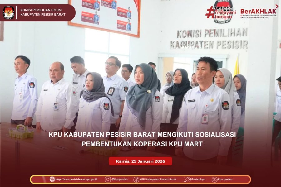 KPU Kabupaten Pesisir Barat mengikuti kegiatan Sosialisasi Pembentukan Koperasi KPU Mart yang diselenggarakan oleh KPU Provinsi Lampung secara daring pada Kamis, 29 Januari 2026.