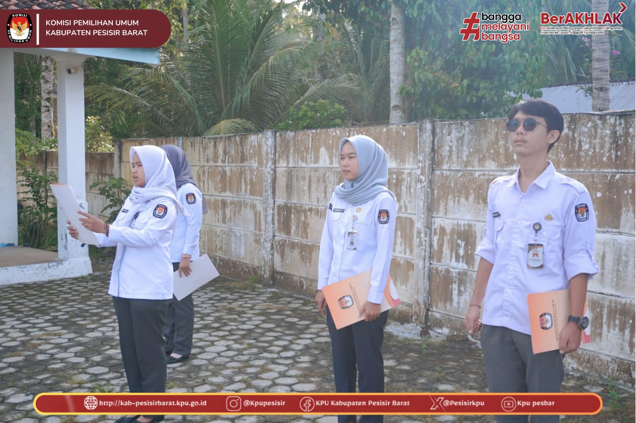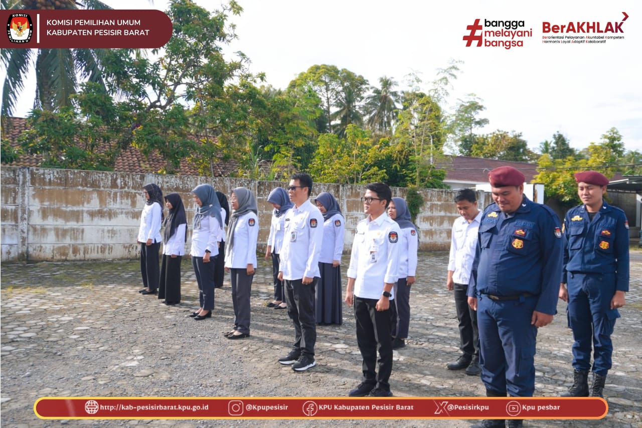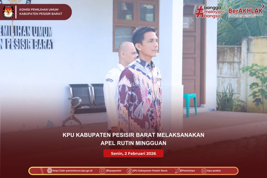 KPU Kabupaten Pesisir Barat melaksanakan apel rutin mingguan pada Senin, 2 Januari 2026, bertempat di halaman Kantor KPU Kabupaten Pesisir Barat. Apel diikuti oleh jajaran pegawai sekretariat KPU Kabupaten Pesisir Barat.