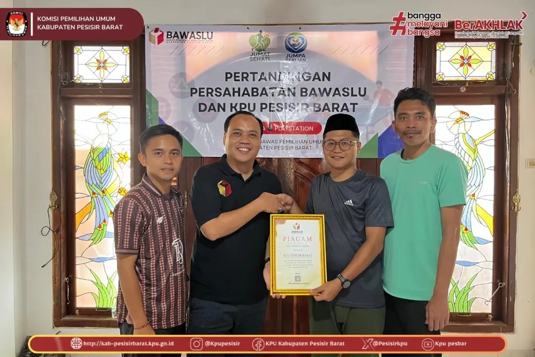 KPU Kabupaten Pesisir Barat bersama Bawaslu Kabupaten Pesisir Barat melaksanakan kegiatan Jumat Sehat sebagai wadah mempererat silaturahmi dan memperkuat sinergi kelembagaan. (Jum'at, 6/2/2026). Kegiatan ini diisi dengan senam bersama, lomba tenis meja, serta permainan PlayStation (Pro Evolution Soccer) yang berlangsung dalam suasana kebersamaan, sportivitas, dan penuh keakraban. Melalui kegiatan ini, diharapkan terbangun koordinasi yang solid serta semangat kolaborasi dalam mendukung penyelenggaraan dan pengawasan pemilu yang berkualitas.