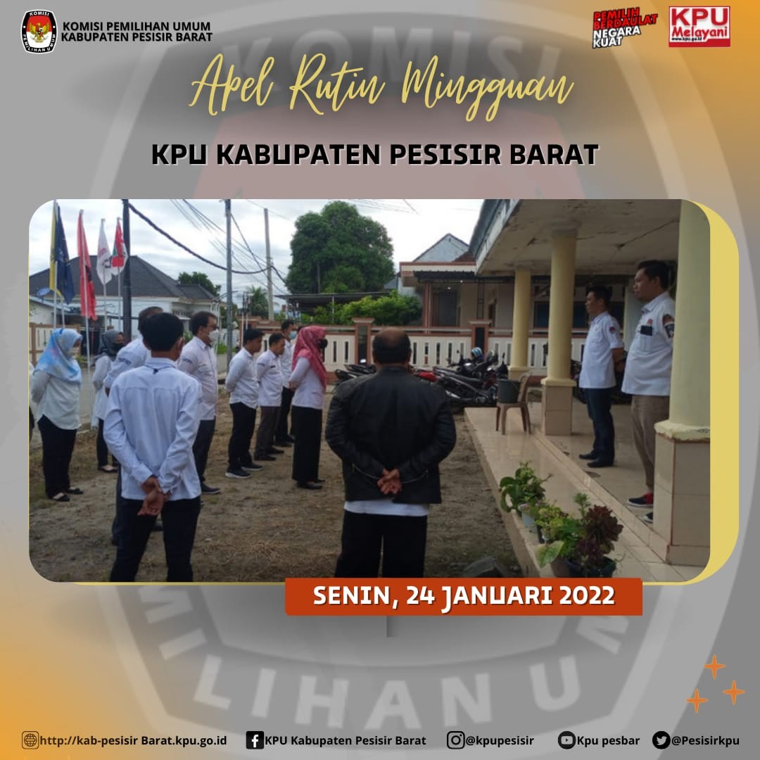KPU Kabupaten Pesisir Barat pada Senin (24/1) melaksanakan Apel Rutin Mingguan di halaman kantor KPU Kabupaten Pesisir Barat.