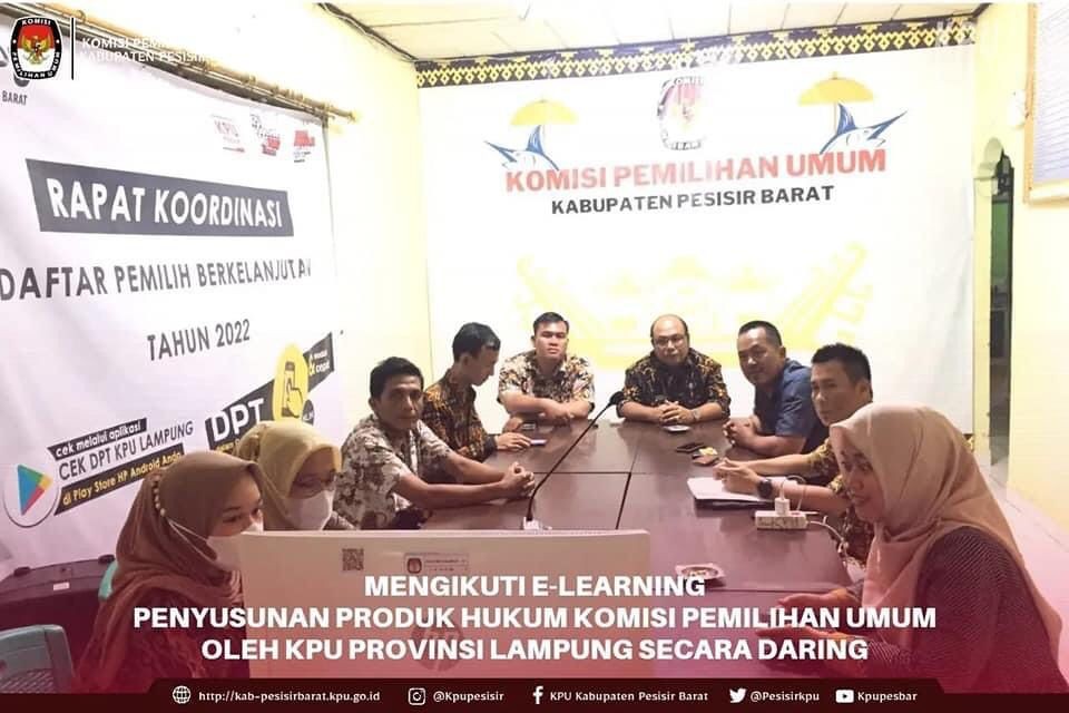 #TemanPemilih, Komisi Pemilihan Umum Kabupaten Pesisir Barat mengikuti e-Learning penyusunan produk Hukum yang diselenggarakan oleh Komisi Pemilihan Umum Provinsi Lampung secara daring melalui zoom meeting pada Jumat (12/8/2022) yang diikuti oleh Para Kasubbag, staf ASN dan PPNPN KPU Kabupaten Pesisir Barat. Serta di ikuti Oleh seluruh KPU Kabupaten/Kota se-Provinsi Lampung.