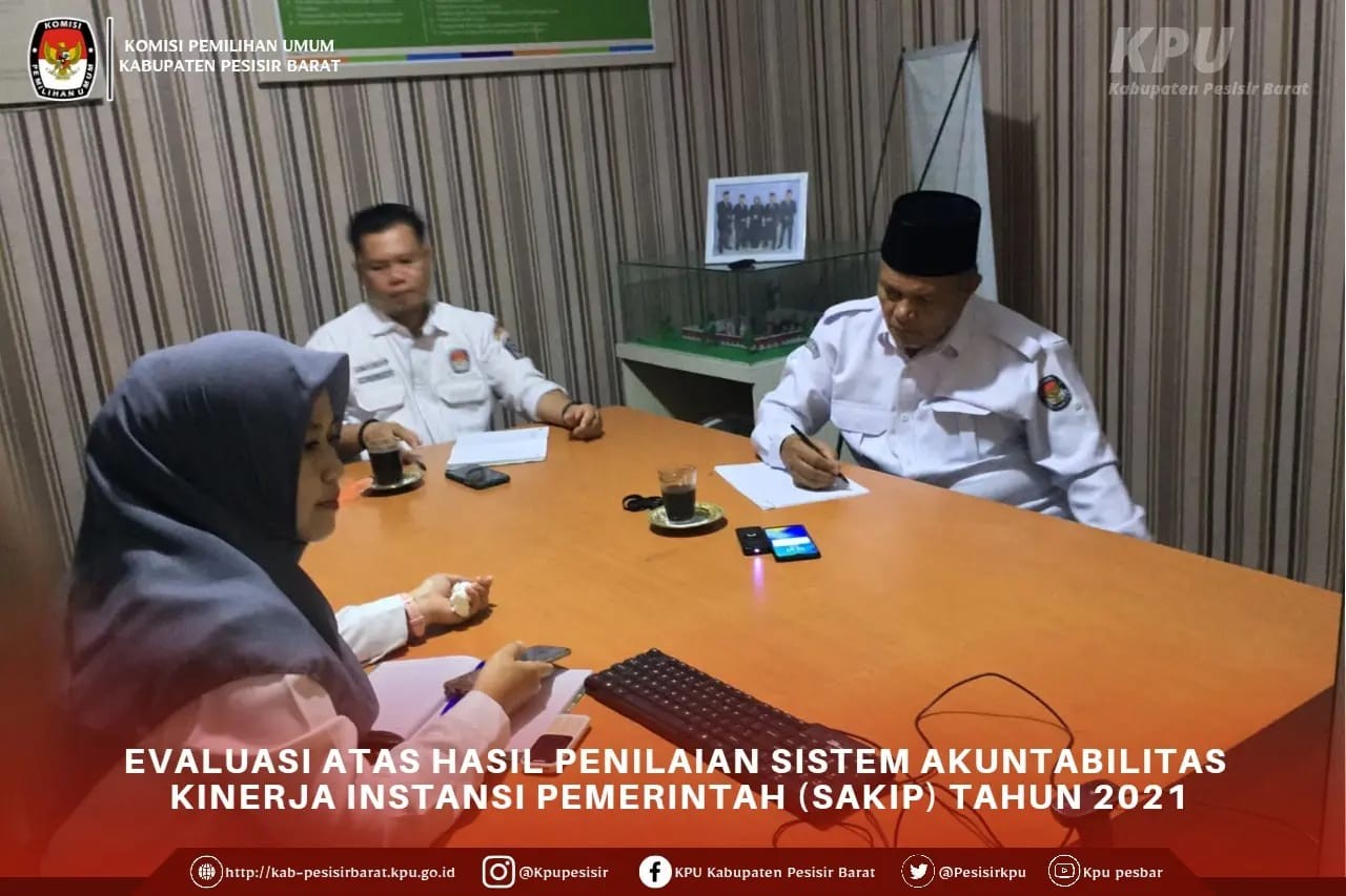 Sekretaris, Kasubbag Perencanaan Data dan Informasi beserta Staf Sekretariat KPU Kabupaten Pesisir Barat mengikuti Kegiatan Evaluasi atas hasil penilaian SAKIP Tahun 2021 , Kamis (16/06).