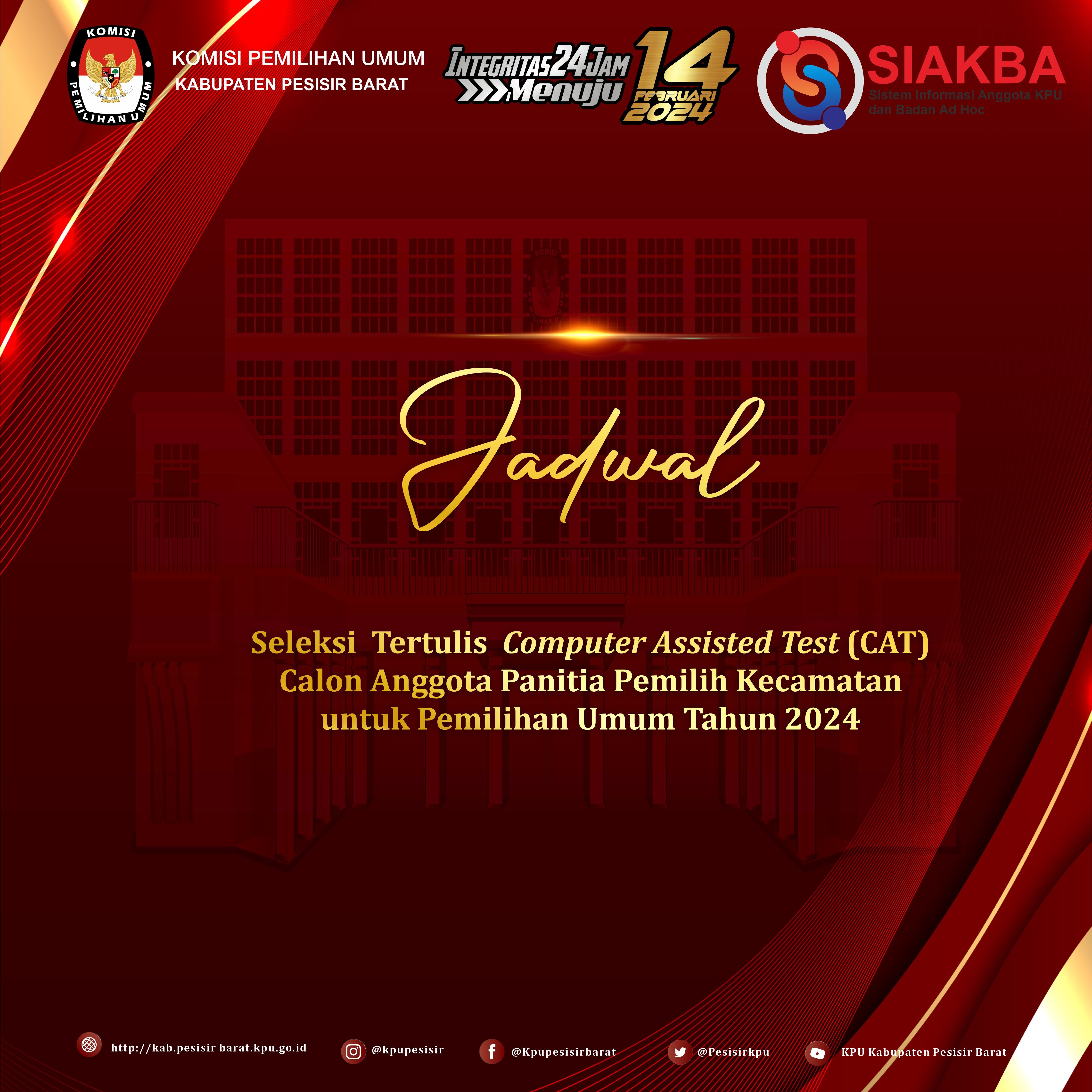 JADWAL SELEKSI TERTULIS /COMPUTER ASSISTED TEST (CAT) CALON ANGGOTA PANITIA PEMILIHAN KECAMATAN (PPK) UNTUK PEMILIHAN UMUM TAHUN 2024
