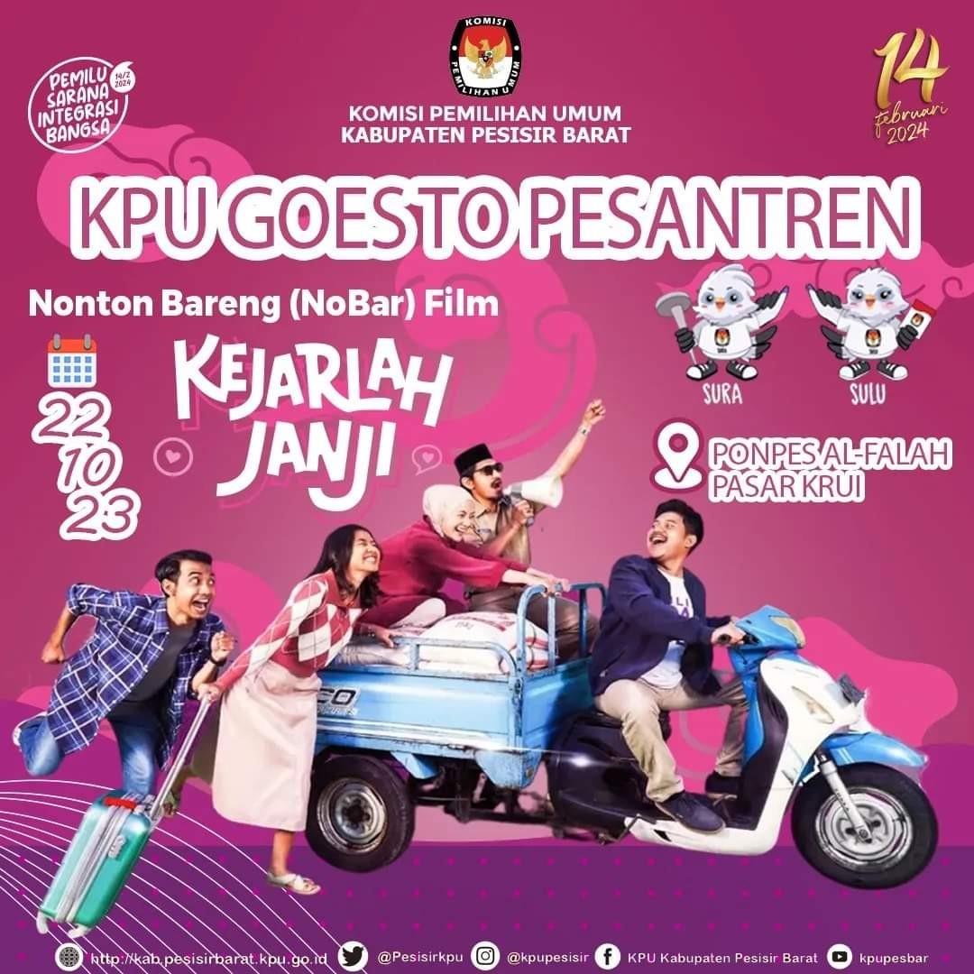 KPU Kabupaten Pesisir Barat melaksanakan kegiatan KPU Goes To Pesantren "Nonton Bareng (Nobar) Film Kejarlah Janji" dalam rangka Peringatan Hari Santri Nasional Tahun 2023.
