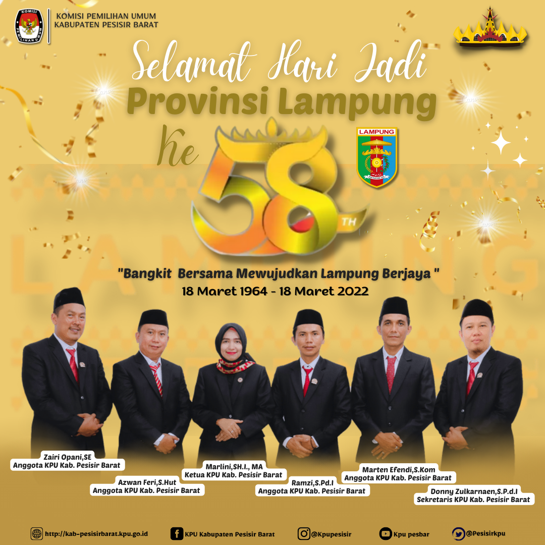 KPU Kabupaten Pesisir Barat mengucapkan Selamat Hari Jadi Provinsi Lampung ke - 58 tahun (18 Maret 1964 -18 Maret 2022)