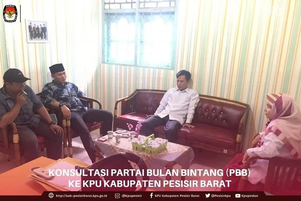 KPU Kabupaten Pesisir Barat menerima Konsultasi dari Pengurus Partai Bulan Bintang (PBB) yang berlangsung di ruang helpdesk KPU Kabupaten Pesisir Barat , Kamis(25/08).