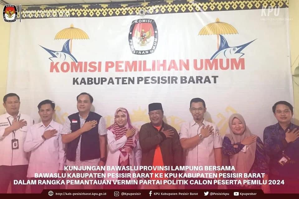 Menerima Kunjungan dari BAWASLU Provinsi Lampung Bersama dengan BAWASLU Kabupaten Pesisir Barat dalam rangka Pemantauan Terhadap Tahapan Vermin Partai Politik Calon Peserta Pemilu Tahun 2024.