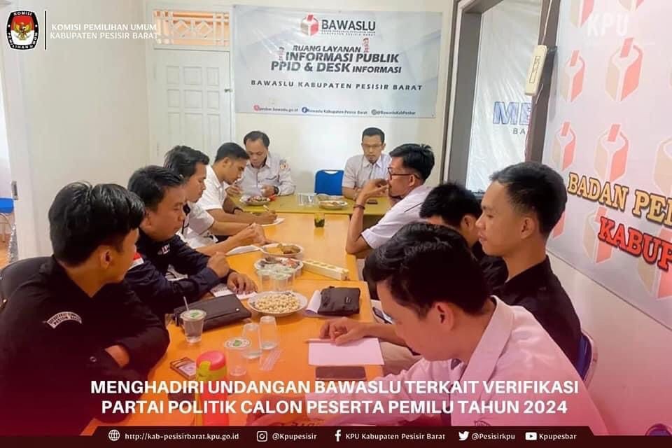 Menghadiri Undangan BAWASLU Kabupaten Pesisir Barat Terkait Verifikasi Partai Politik Calon Peserta Pemilu Tahun 2024.
