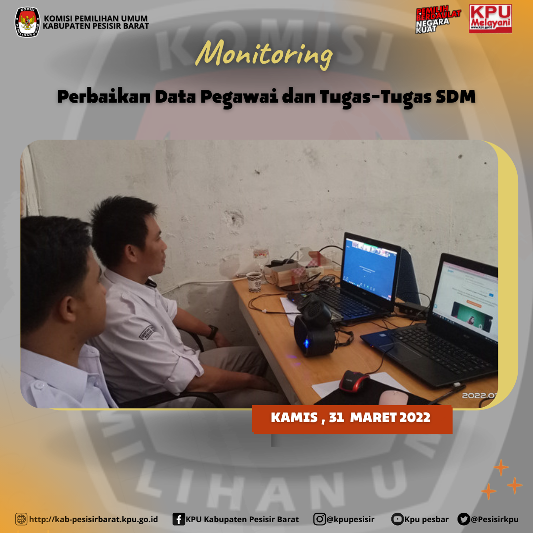 Kasubag Hukum & SDM Merah Gunawan,SH,. MM beserta Staf mengikuti , Monitoring Perbaikan Data Pegawai dan Tugas-tugas SDM dengan Sub Bagian SDM KPU Provinsi Lampung secara daring Zoom , dengan peserta 15 KPU Kabupaten /Kota Se - Provinsi Lampung, pada Kamis (31/03).
