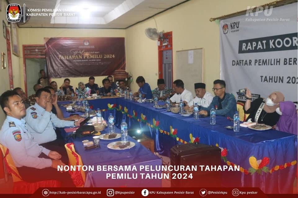 Memasuki pelaksanaan Tahapan Pemilu Serentak Tahun 2024, KPU Kabupaten Pesisir Barat menggelar acara nonton bersama Peluncuran Tahapan Pemilu 2024 yang diselenggarakan oleh KPU RI melalui Zoom Meeting dan Live Streaming Kanal YouTube KPU RI, pada Selasa (14/06)