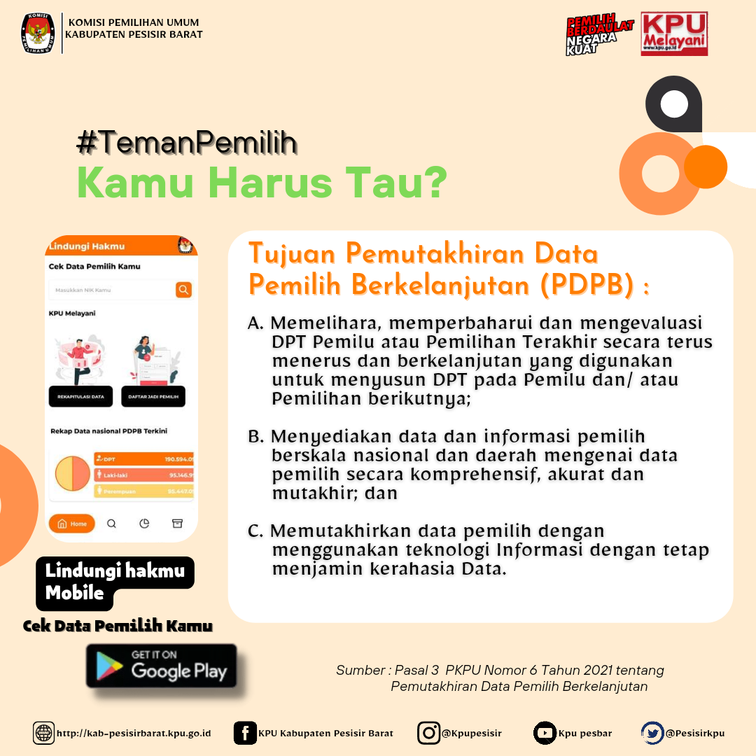 Kamu harus Tau ...?? Apa tujuan Pemutakhiran Data Pemilih Berkelanjutan (PDPB).