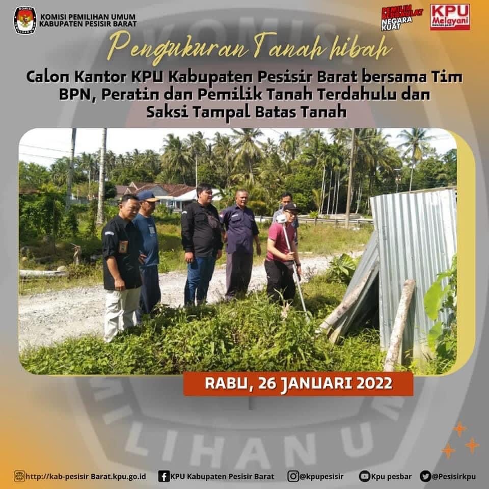 #Temanpemilih , KPU Kabupaten Pesisir Barat Pada Rabu Pukul 08.00 WIB (26/1) melakukan Pengukuran Tanah Hibah untuk calon kantor KPU Kabupaten Pesisir Barat.