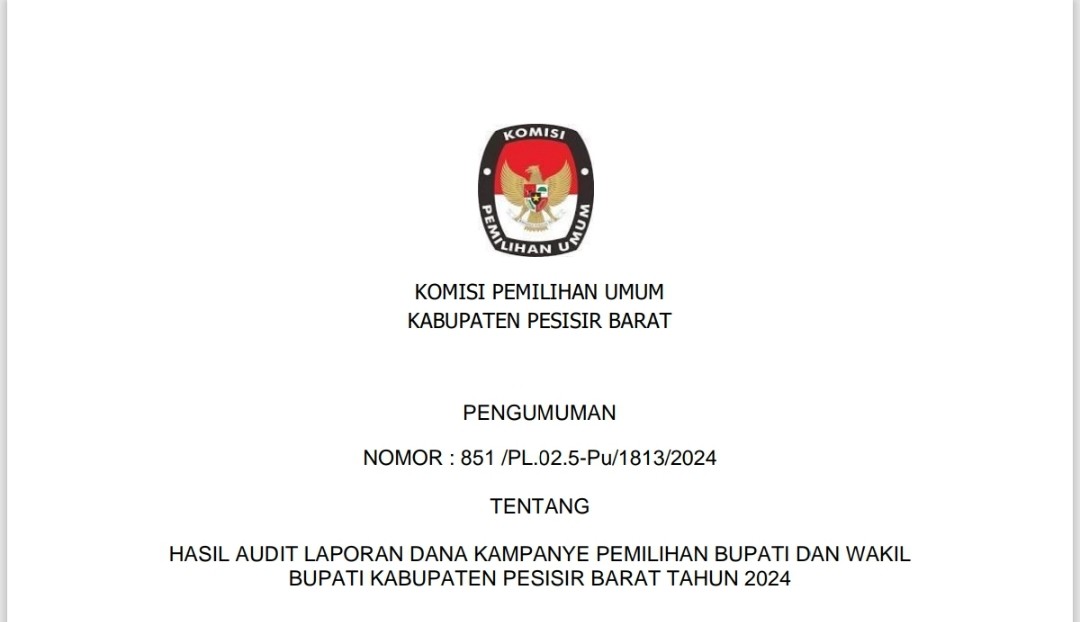 Pengumuman Hasil Audit Laporan Dana Kampanye Pemilihan Bupati dan Wakil Bupati Kabupaten Pesisir Barat Tahun 2024