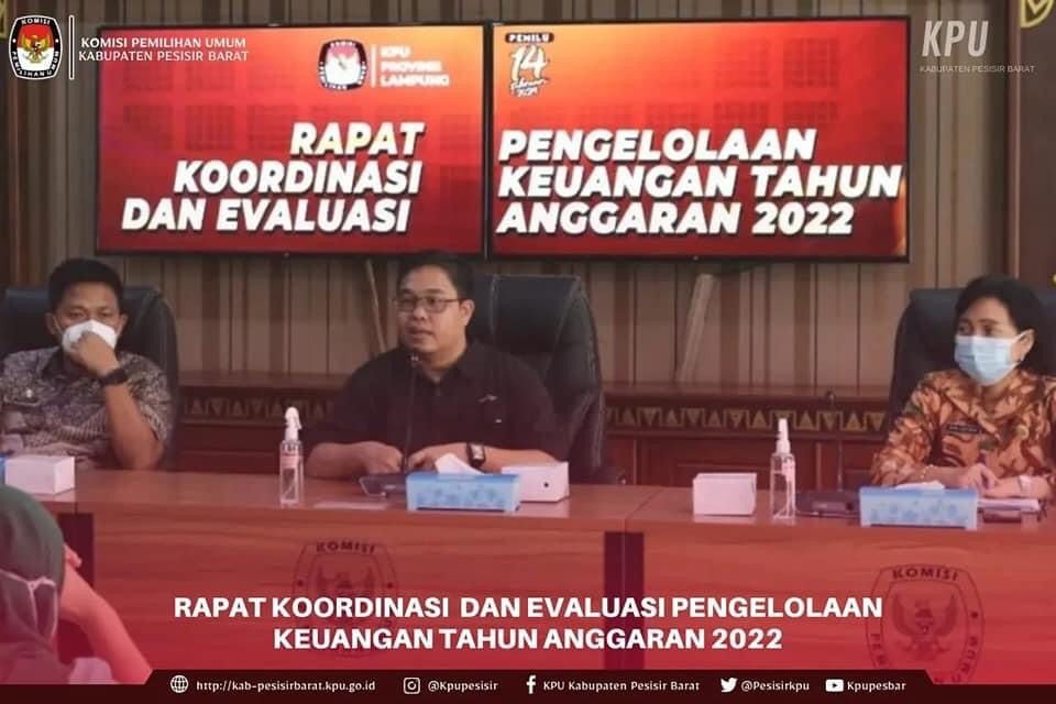 #TemanPemilih Pada hari ini Jumat tanggal 9 September 2022 KPU Kabupaten Pesisir Barat Mengikuti Rapat Koordinasi dan Evaluasi Pengelolaan Keuangan Tahun 2022 yang di selenggarakan oleh KPU Provinsi Lampung dan di ikuti oleh seluruh KPU Kabupaten /Kota Se-Provinsi Lampung.