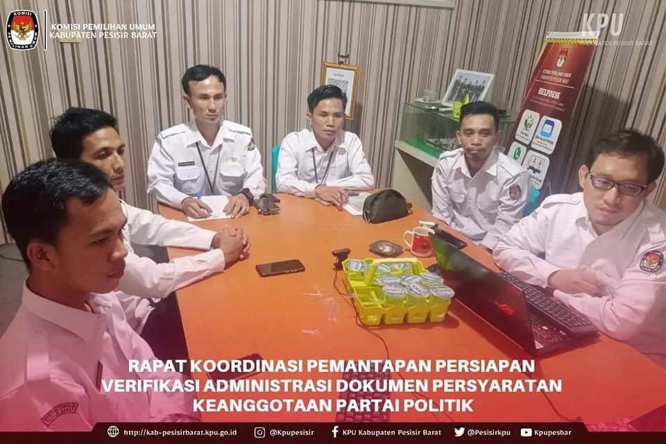 #TemanPemilih Hari ini Senin, Tanggal 15-08-2022 Pada Pukul 09.30 WIB KPU Kabupaten Pesisir Barat mengikuti Kegiatan Rapat Koordinasi Pemantapan Persiapan Verifikasi Administrasi Dokumen Persyaratan Keanggotaan Partai Politik.