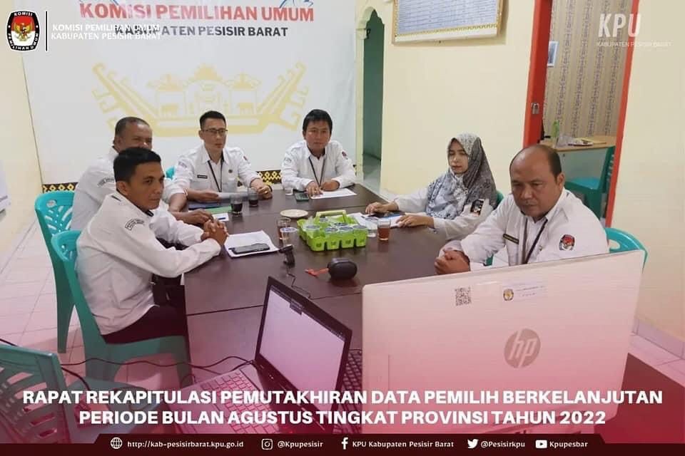 KPU Kabupaten Pesisir Barat mengikuti Rapat Rekapitulasi Pemutakhiran Data Pemilih Berkelanjutan Periode bulan Agustus Tingkat Provinsi Tahun 2022. Pada Senin (05/09).