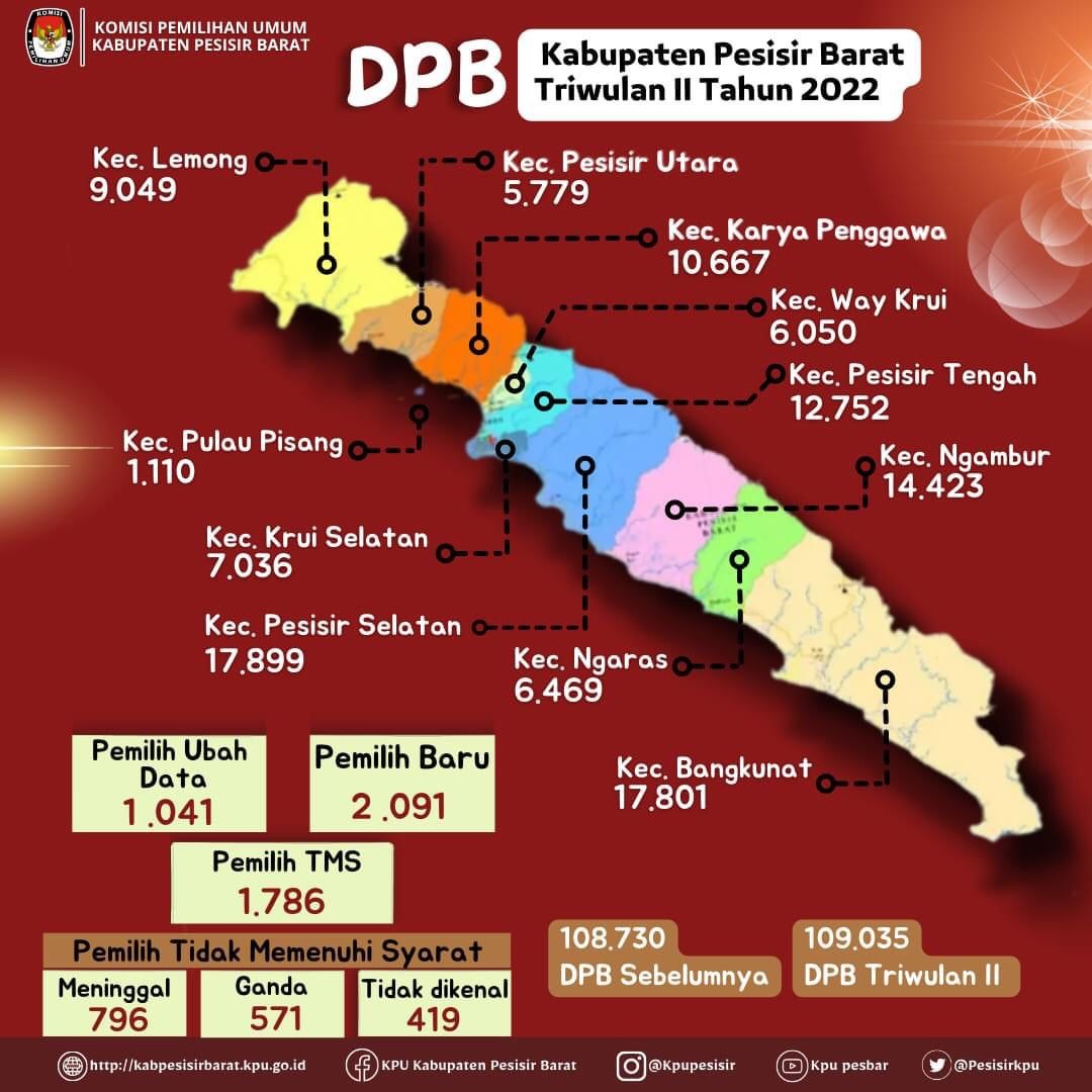 Berikut Rekapitulasi Pemutakhiran Data Pemilih Berkelanjutan Triwulan II Tahun 2022 Tingkat Kabupaten Pesisir Barat.