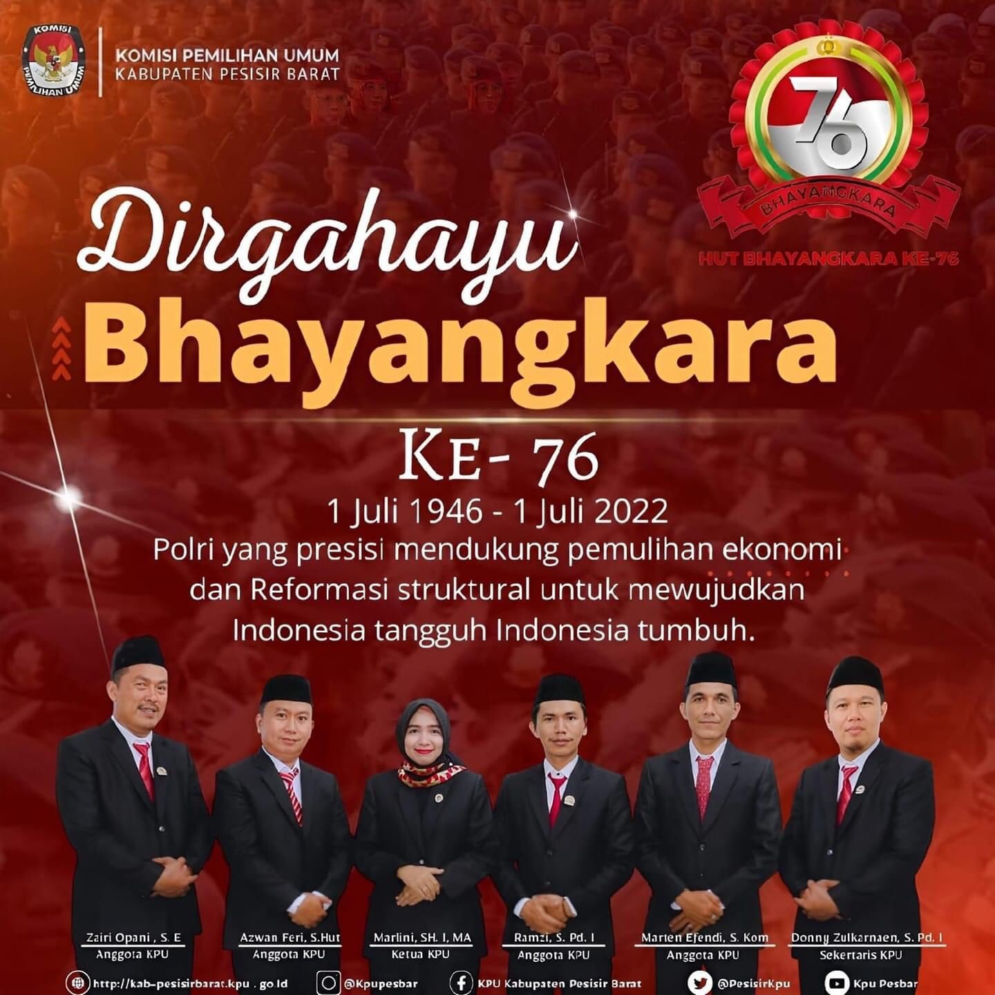 segenap jajaran KPU Kabupaten Pesisir Barat mengucapkan Selamat Hari Bhayangkara ke-76..