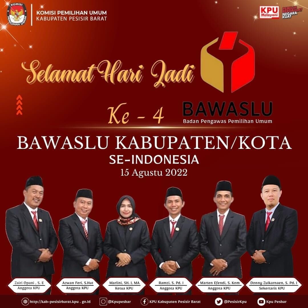 #TemanPemilih Segenap Jajaran KPU Kabupaten Pesisir Barat mengucapkan Selamat Hari Jadi BAWASLU Kabupaten/Kota Se-indonesia yang ke-4