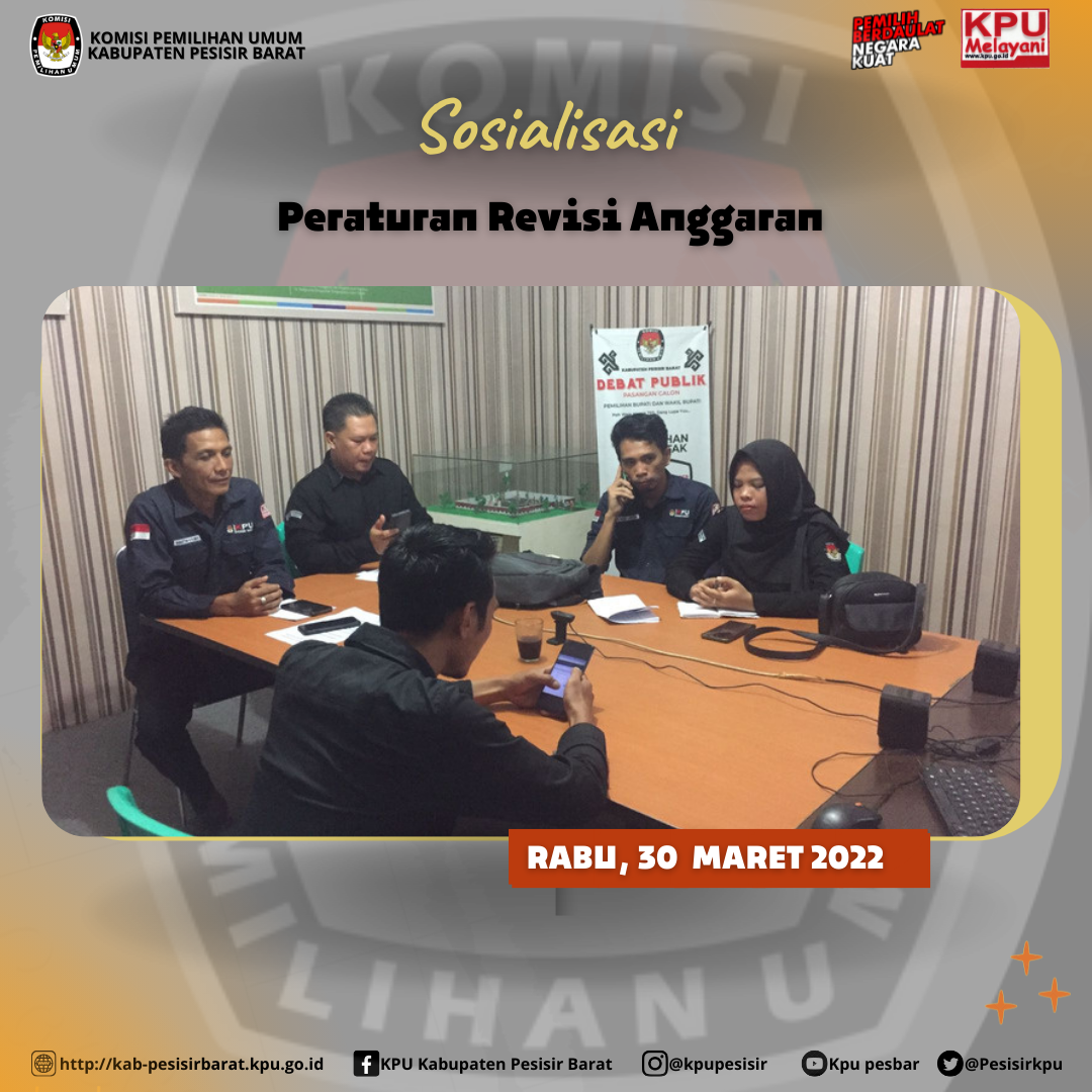 KPU Kabupaten Pesisir Barat Mengikuti Sosialisasi Peraturan Revisi Anggaran yang dilaksanakan oleh Kanwil Ditjend Perbendaharaan Provinsi Lampung via Zoom Meeting.