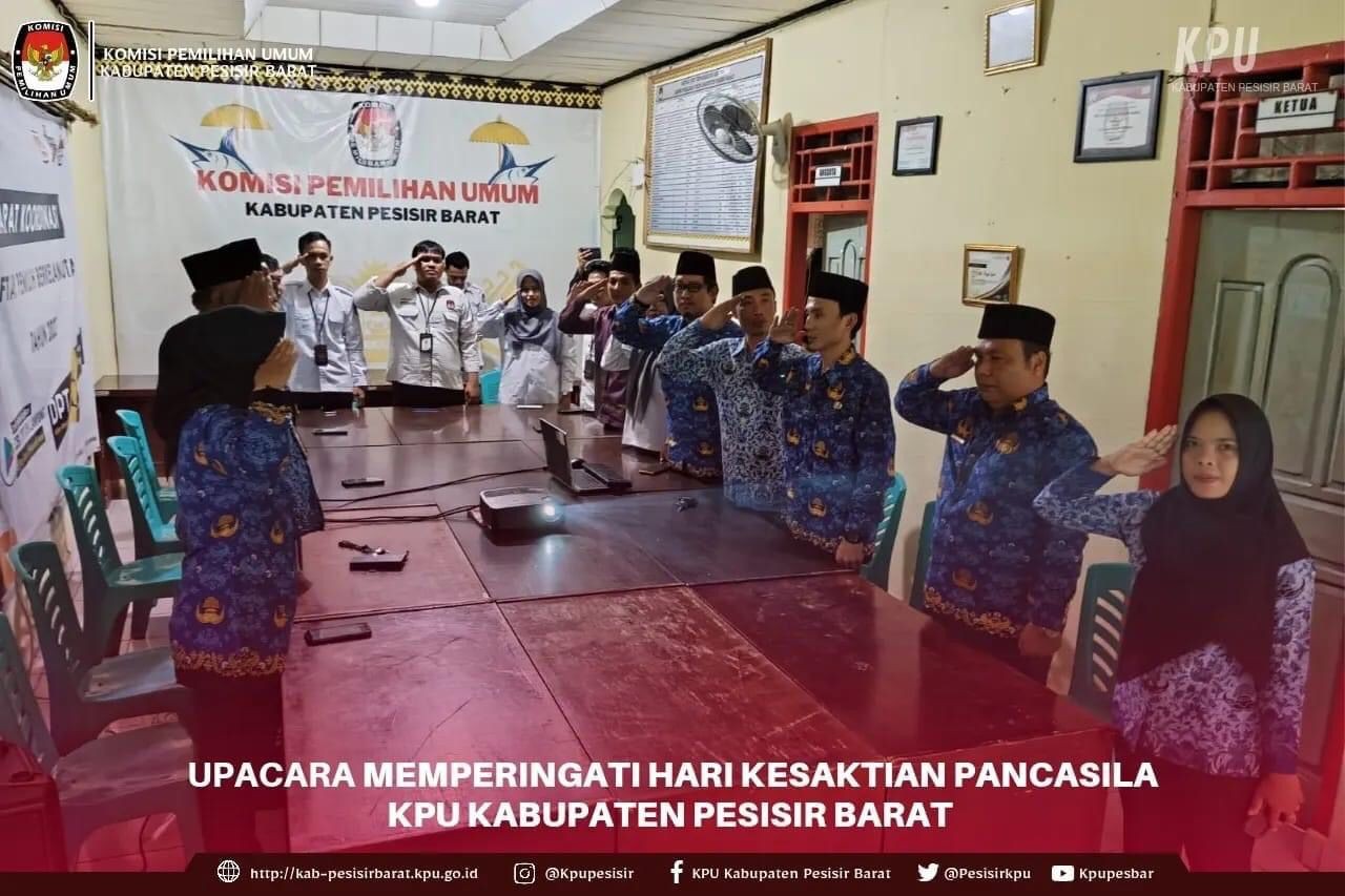 Sabtu 1 Oktober 2022 Pukul 08.00 KPU Kabupaten Pesisir Barat mengikuti Upacara Memperingati Hari Kesaktian Pancasila Tahun 2022 secara Virtual di Aula Kantor KPU Kabupaten Pesisir Barat.